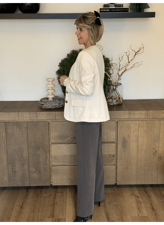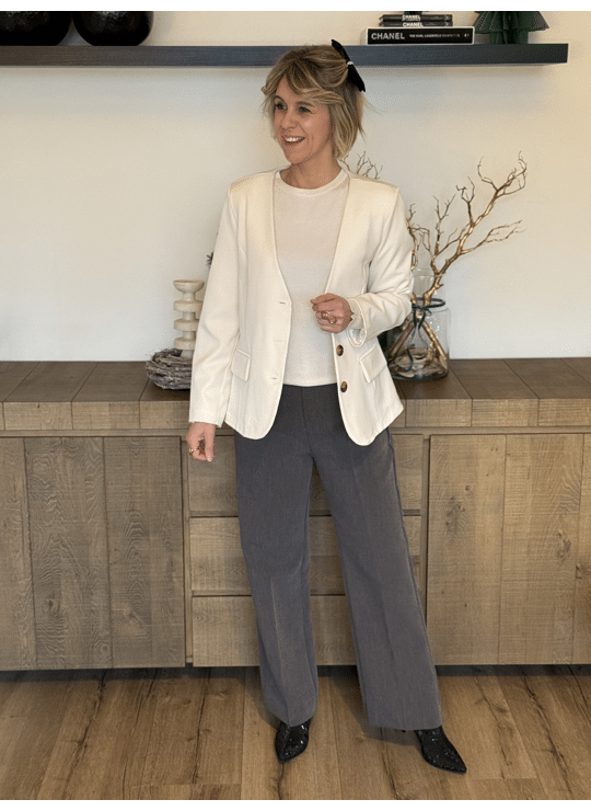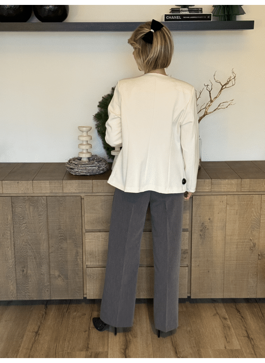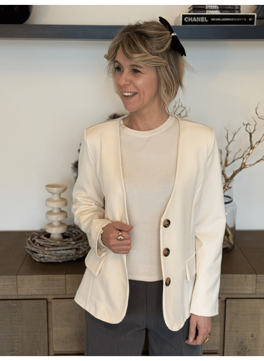 Licht gecentreerde blazer met v-hals, knoopjes en gevoerd.