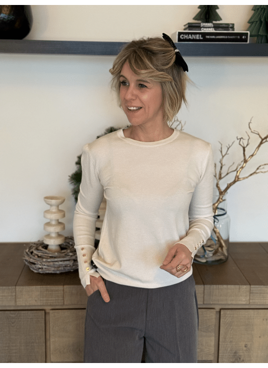 Fine pull met ronde hals, licht aangesloten fit. Tijdloze basic!