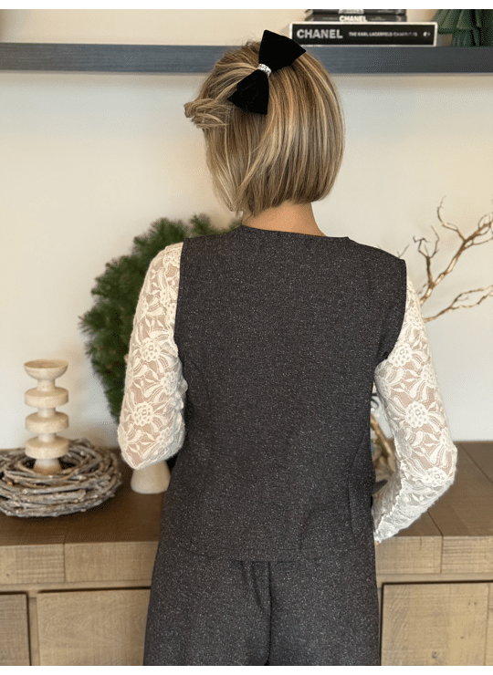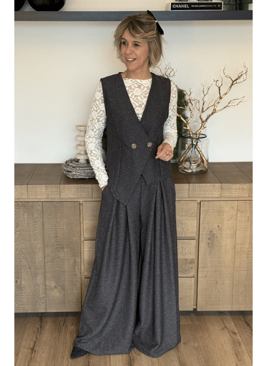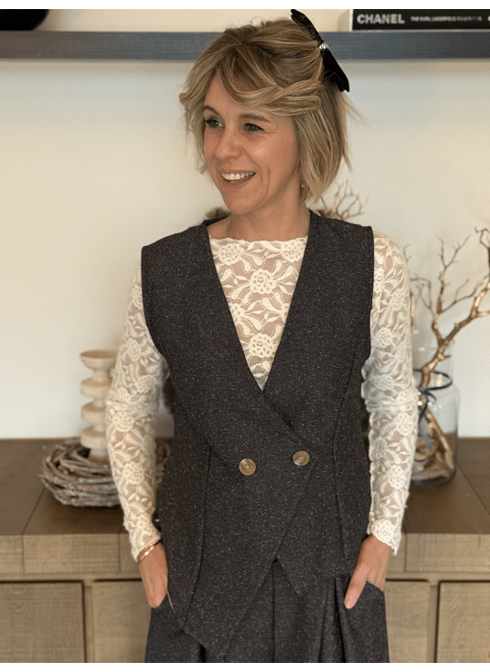 Elegante gilet, overslagmodel met v-hals en licht getailleerde pasvorm. Combineer met bijpassende broek Gravere voor een stijlvol setje.