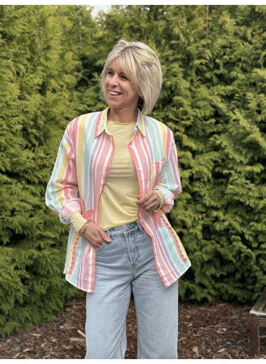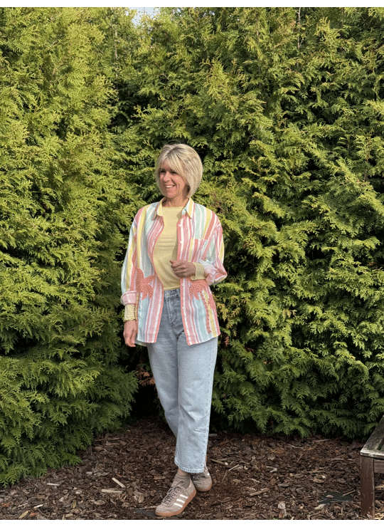 Speels zomerhemd met palmtrees, los model en valt aan de achterkant langer. Ook leuk om je badkledij onder te dragen in de zomer.