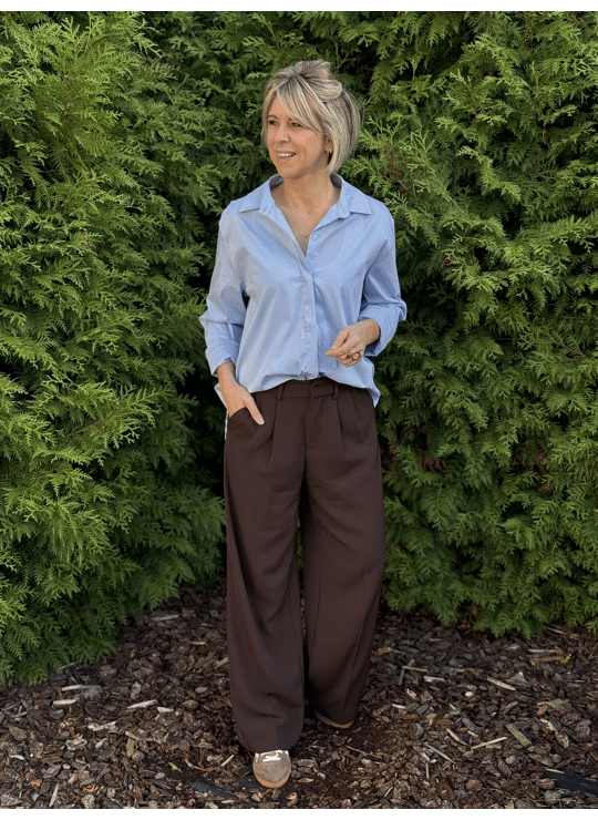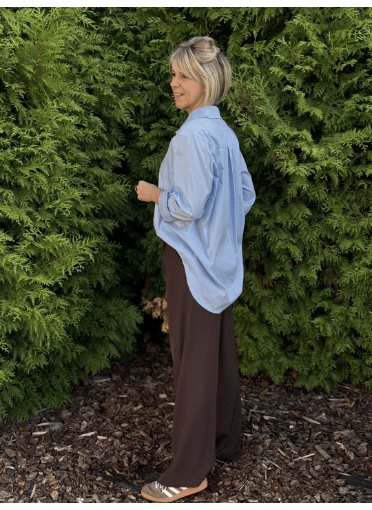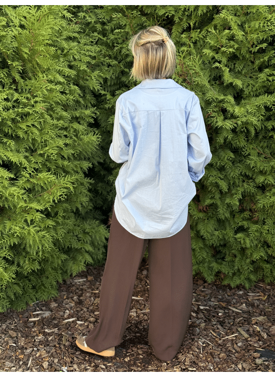 Basic oversized hemd dat vanachter iets langer valt dan vooraan. Combineert mooi op een jeans. Kan je zowel sportief als klassiek dragen.