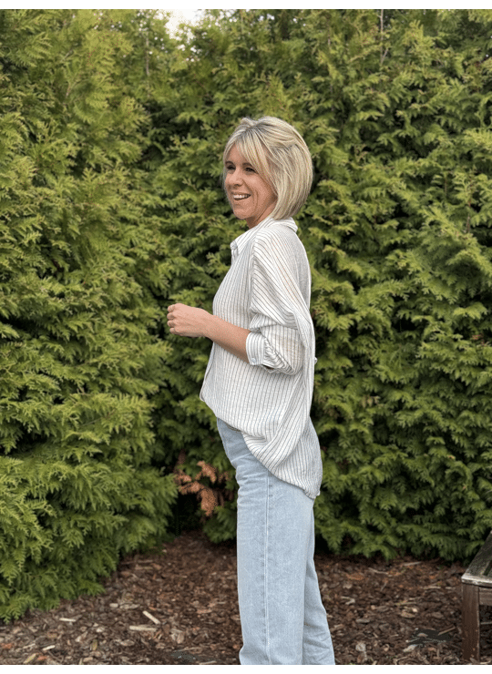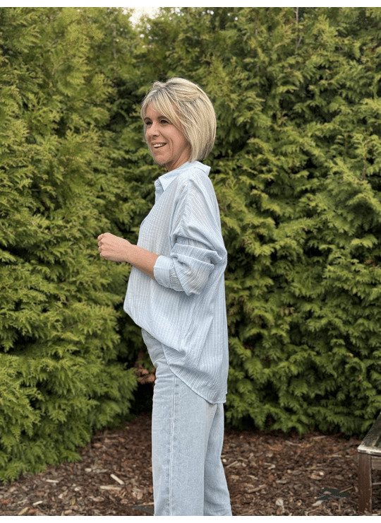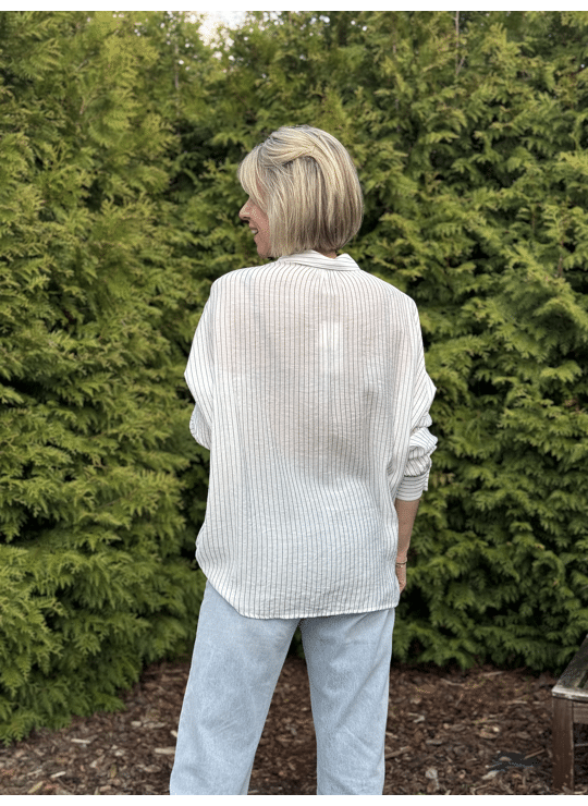 Zomerse, losse hemdsblouse met streepjes. Dit is een dunner stofje.