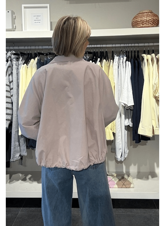 Hip bomberjacket met koortjes om aan te trekken. Dit model heeft zakken en is gevoerd.
