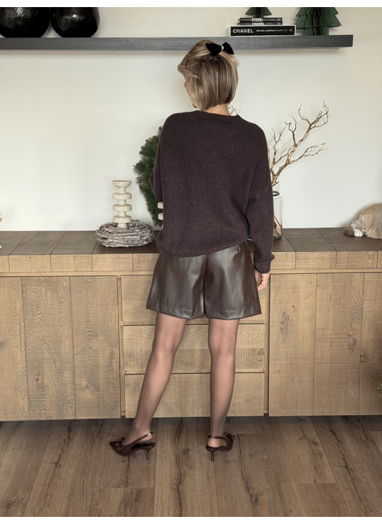 Korte short in faux leather met zakjes en plooitjes bovenaan.