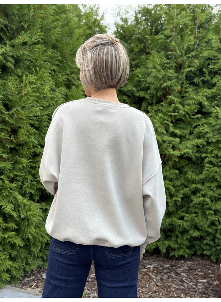 Warme sweater met fleeche aan de binnenkant. Op de voorkant staat een tekst in brown glitter.